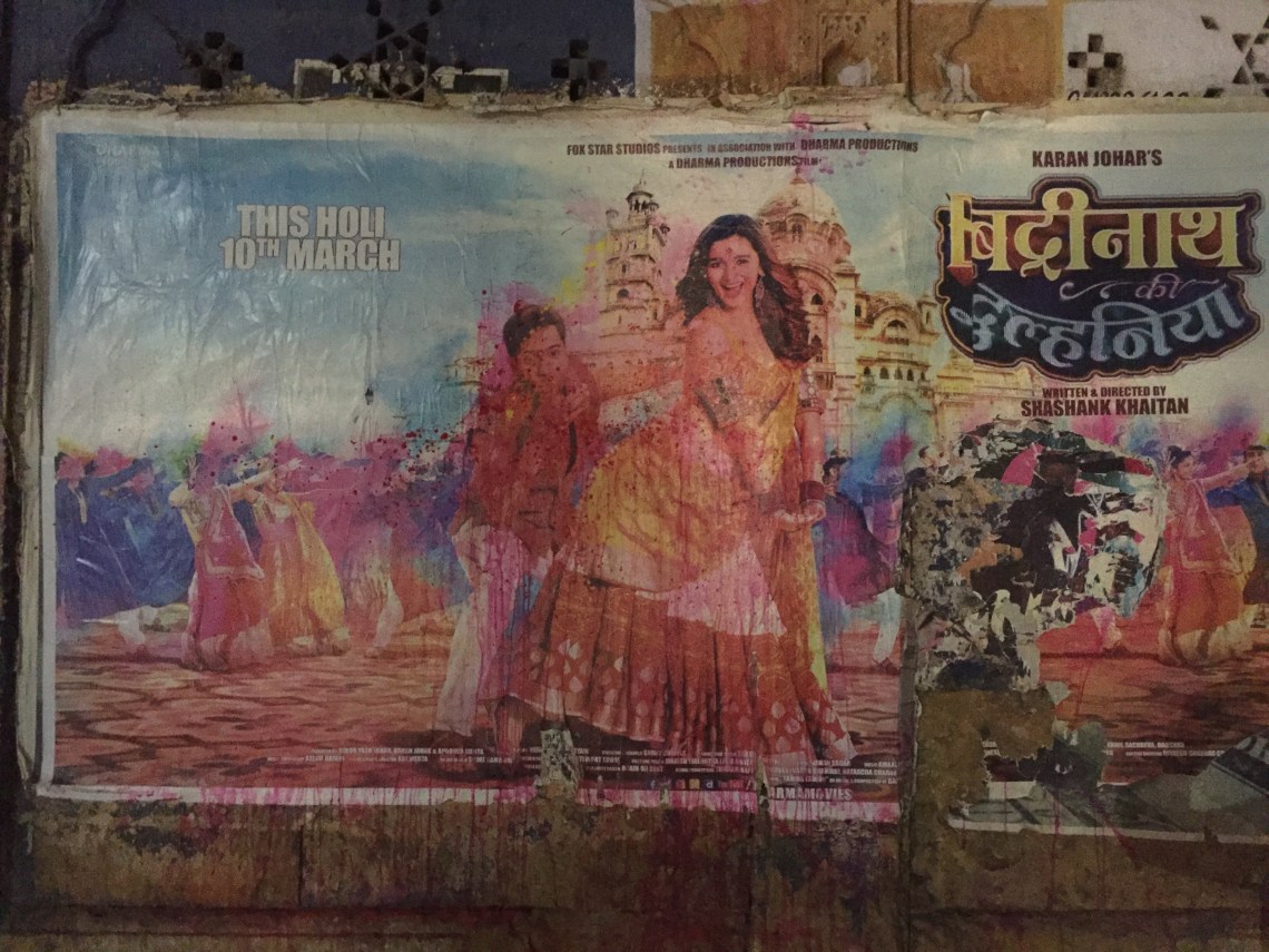 A poster for a film released during Holi. Its drips of colour, a proper drenching it seems, adding a fitting after-touch.