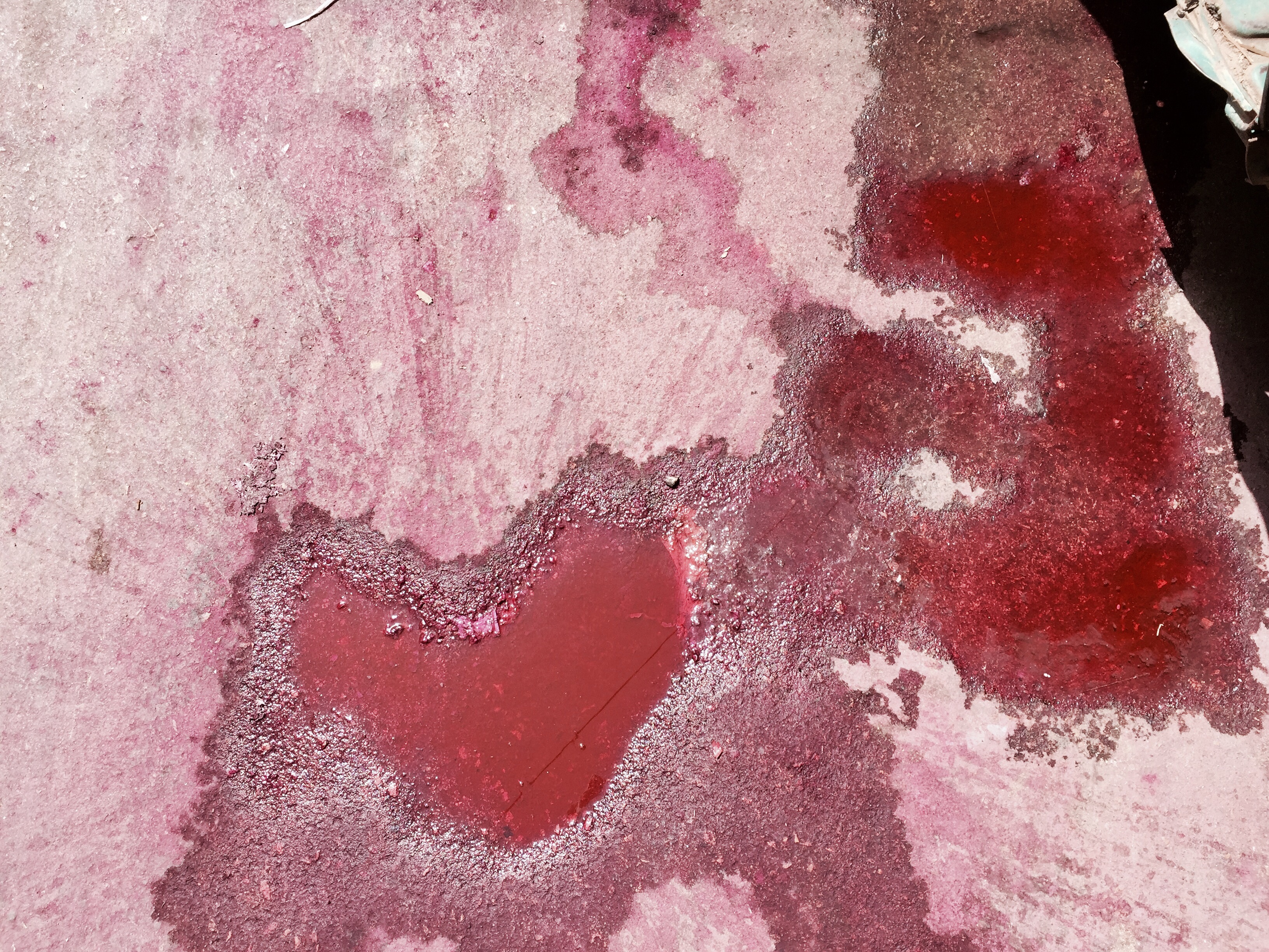 In the mornings, the shopkeepers wash the paving stones in front of their shops. Here the water has mixed with the pink powder and collected in small dimples in the sandstone paving. It looks menacing like the blood from an abbatoir, but it’s the red of Holi, of joy of fun and of love.