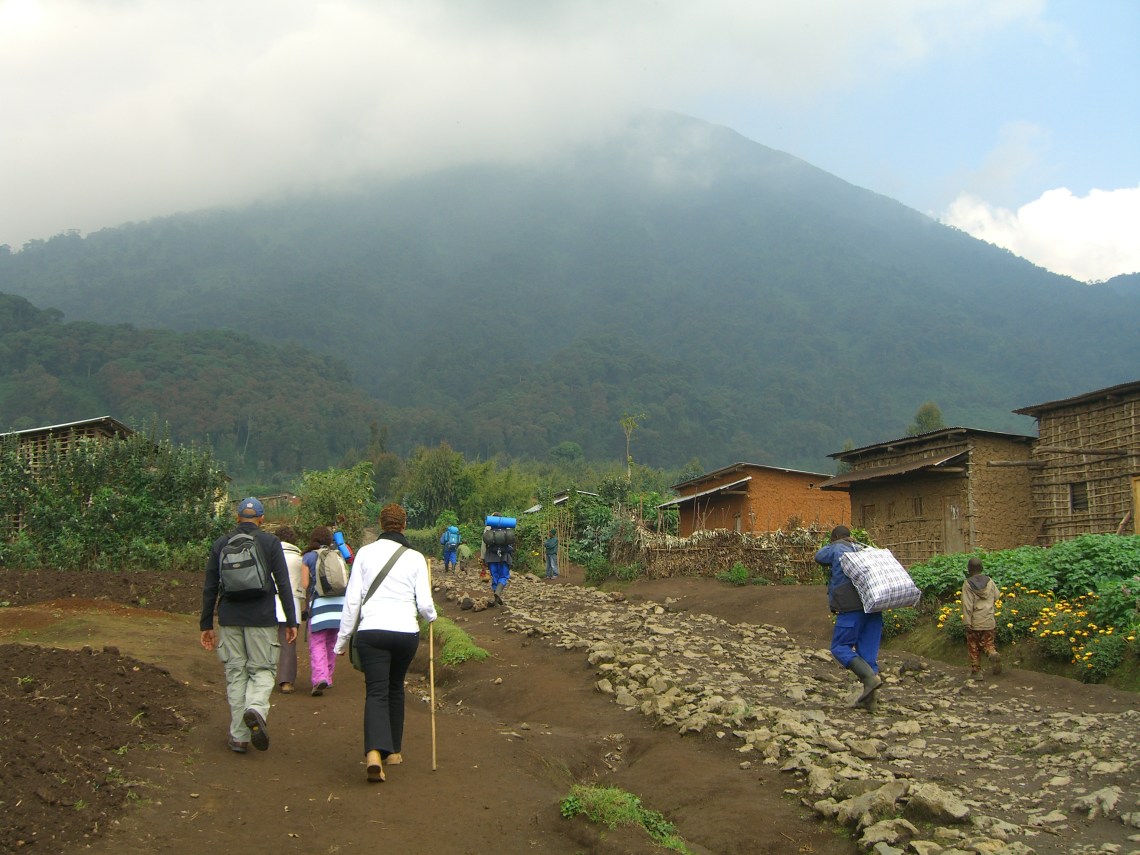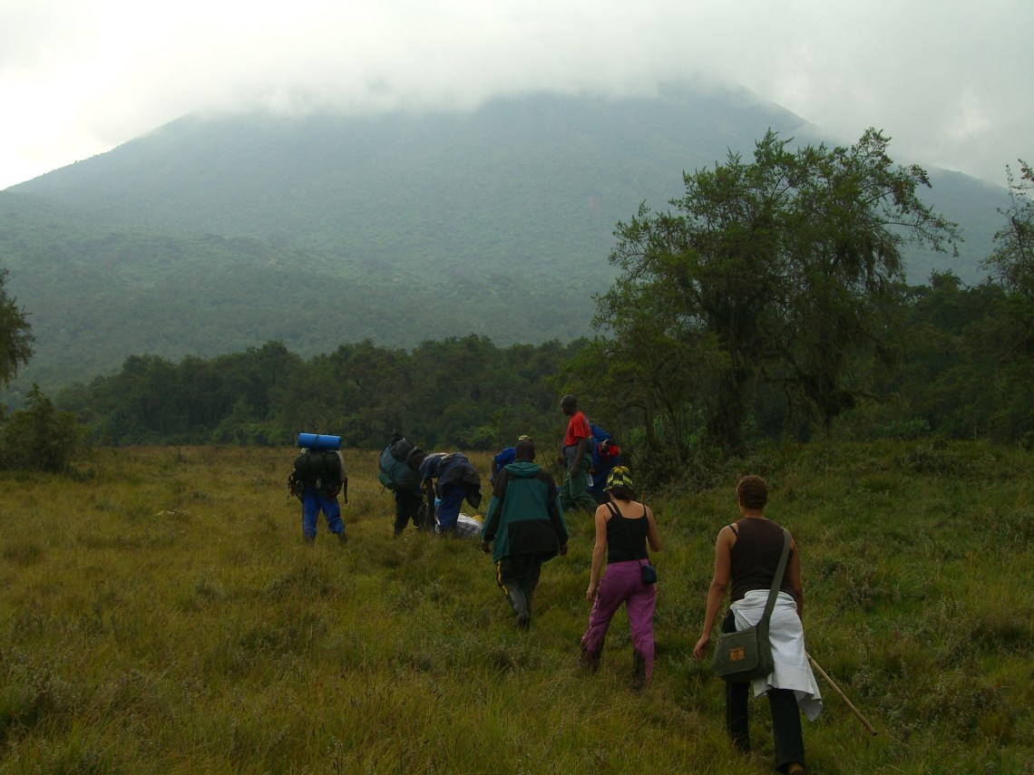 On Friday 22nd August 2008 we drove in a pick-up truck to the Parc Nationale de Volcanes straddling Rwanda, Uganda and DR Congo. We were a motley group of newly found friends; there was Paula, a VSO volunteer and teacher who lived in a small village beside lake Gahini; Johanna a doctor, Christine, another VSO volunteer and Mike, the country director of VSO and my tennis buddy. None of us had known each other before our own personal journeys had taken us to Rwanda, her allure had brought together a very international ascent party of British/ German/ Irish and Belgian.