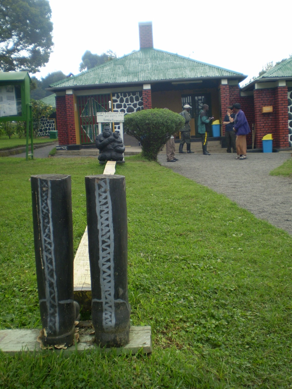 At the park office we signed our paper work and drank steaming coffees in the chill morning breeze, staring at concrete gorilla sitting on the lawn with a concrete baby in her arms.