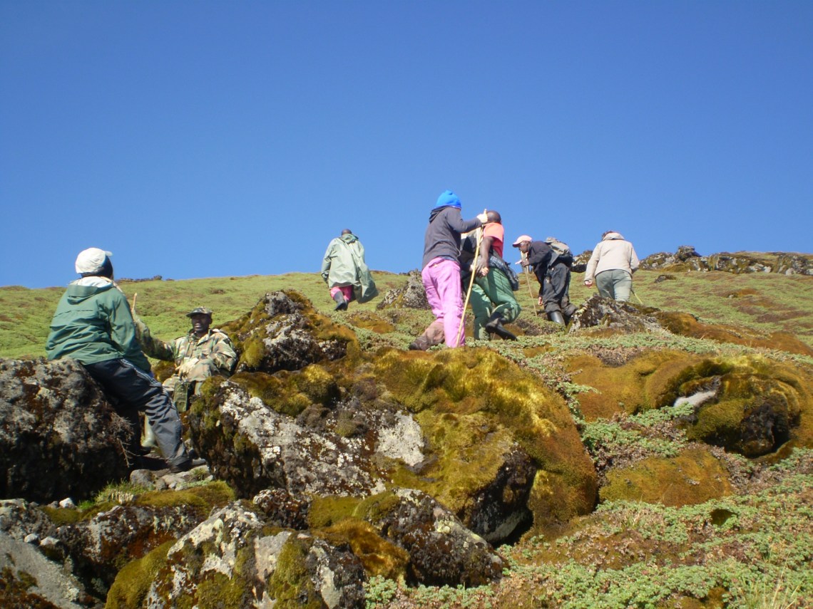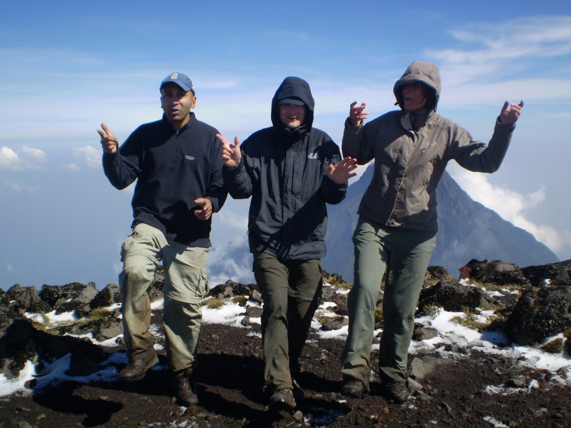 We started a song and dance on the top of Mount Karisimbi, singing, ‘One finger one thumb keeping moving’. I’m not sure what our guides made of our singsong.