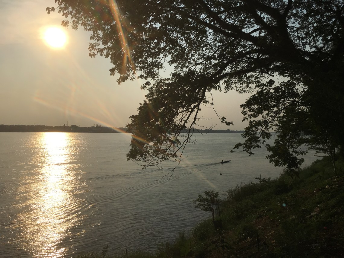 Through binoculars (one of the 16 things I alway find useful when travelling) one can make out a few kilometres away on the Thai side, a certain lifestyle difference; shiny white SUVs; golden temples; stupas lit up brilliantly; rows of evenly placed lampposts; shiny shopfronts. In contrast, on our side, there was a dimmer more audited lighting, fewer cars and fisherman in long-tailed boats catching their supper.