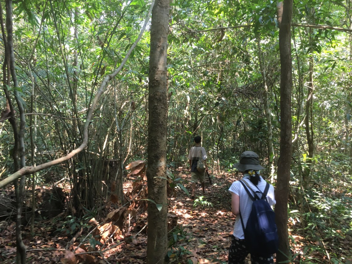 We climbed the lower reaches of Elephant Mountain and Ice stopped and asked us to pick up a leaf and a stone. We then placed them on a mound to honour the spirit god of the mountain and Ice explained that in addition to Buddhism, the Lao also believe in spirits called phi.