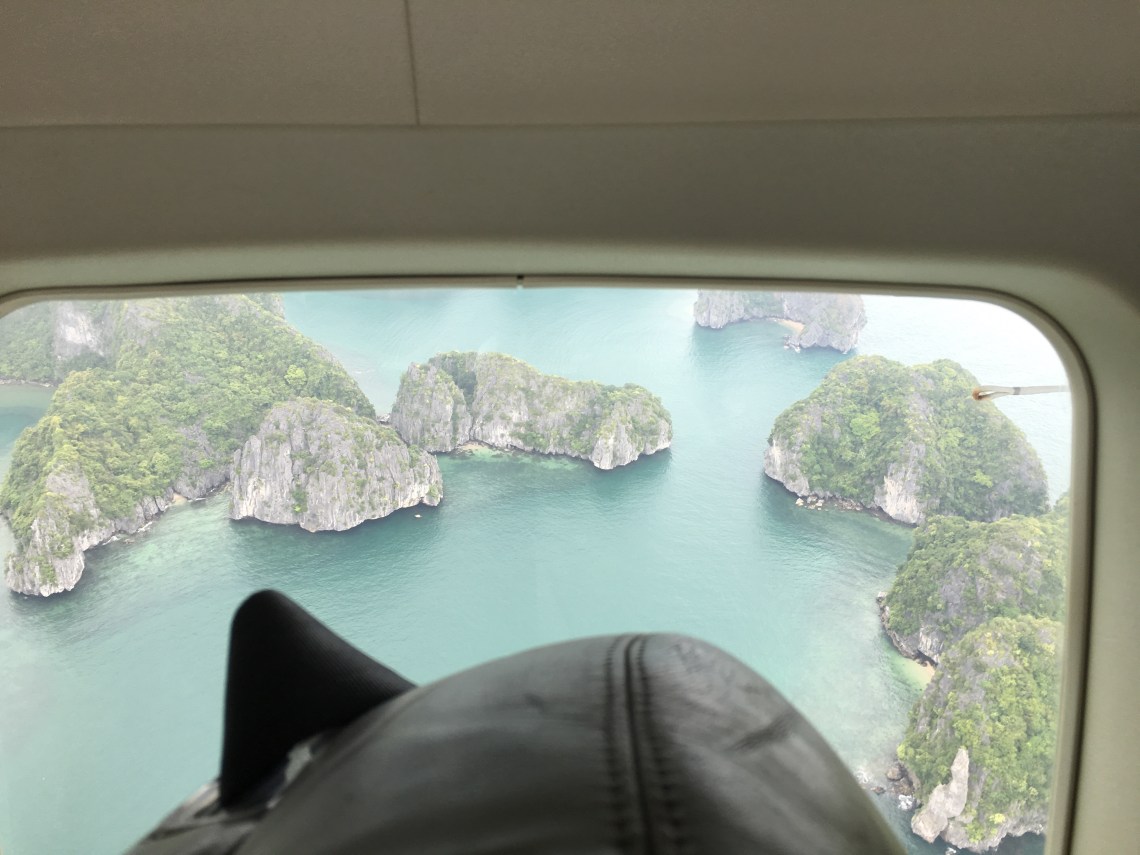 The landing itself was soft, without the jolt you get with a land landing. And following this soft touchdown, there are a series of small judders as the floats make contact with the waves. At the end there was a little splash and suddenly we were in Halong Bay.