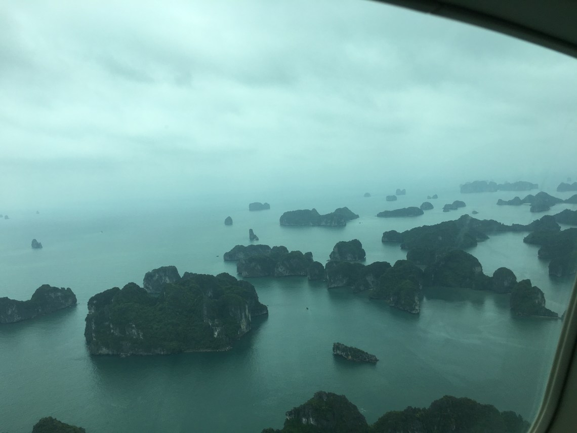 Soon, we arrived at the sea dotted with karst limestone cliffs. The scenery below us was spectacular and utterly unique, and each time we banked we stared down in awe.