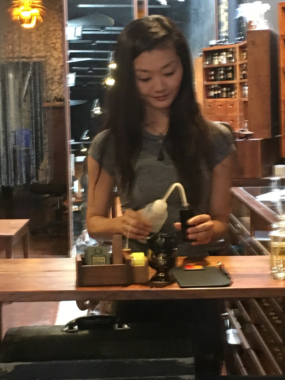 Sarah was very pleased with her purchase, poured with exacting standards in to two glass vials which she tucked away in a box and wrapped with clothes in the centre of her backpack.