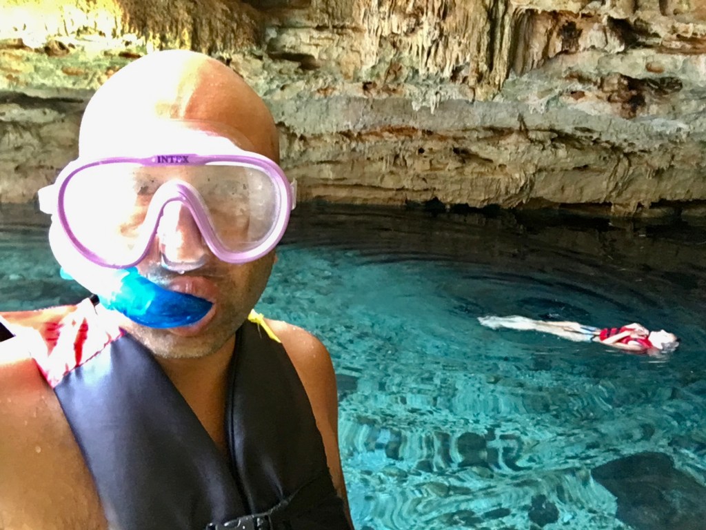 So after visiting a Mayan temple in Uxmal one morning, we decided to cool off. We found a nearby cenotes called Chochola. The man at the entrance handed me a snorkel.