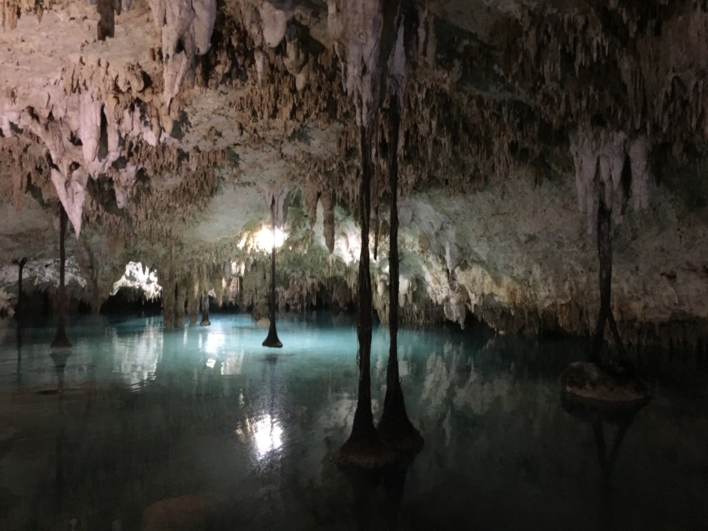 Over the next few weeks we visited more cenotes. Caverns dripping with stalactites and stalagmites, some whose roofs had collapsed and created an amphitheatre of light; some covered in lily pads, and others with tree roots and lianas dripping down.
