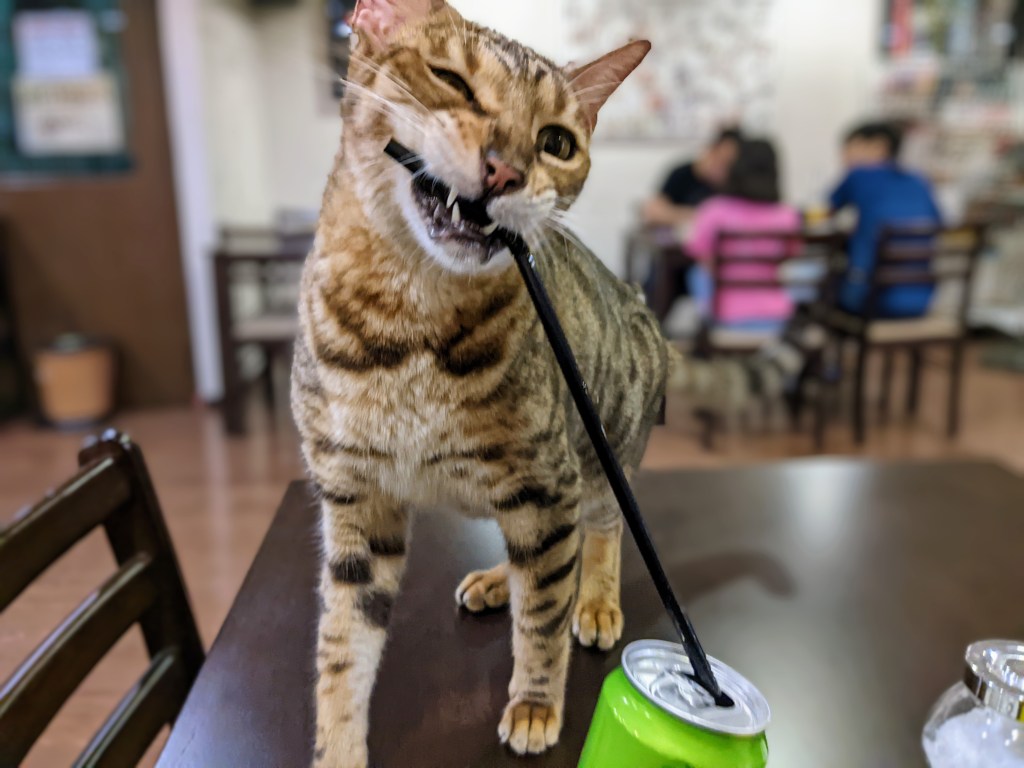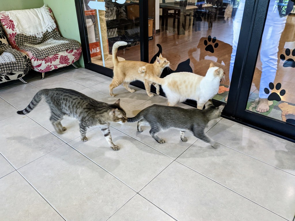 On our second day in Borneo, Life-boss said excitedly, ‘There’s a cat café here, can we go can we go?’