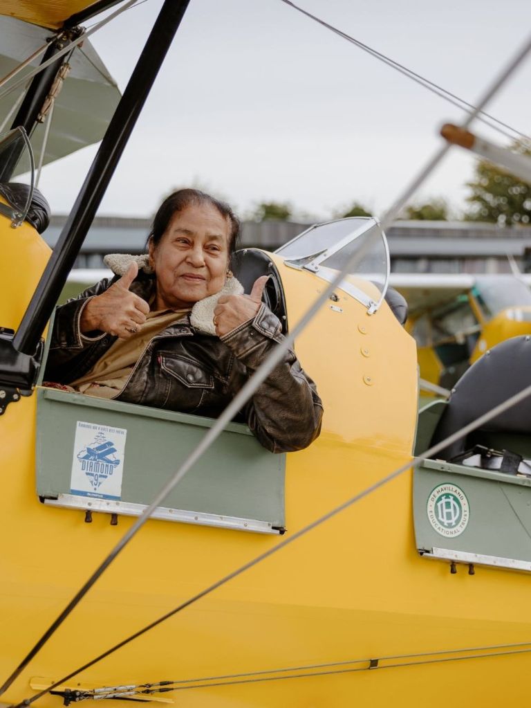 To an observer unaware of my mum’s achievements, she may have looked out of place ascending the aircraft. An 85 year old Indian lady in a silk sari, diminitive at five foot three inches climbing in to the cockpit. To the unknowing observer, the sight would have appeared incongrous.