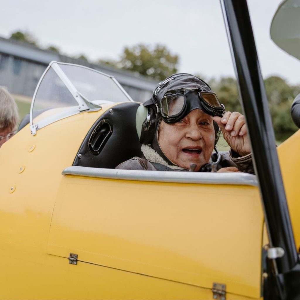 Mum then asked me if she could borrow my jacket as it would be cold up there and it was then that I realised that this wasn’t going to be just a photo-shoot. My mum would fly again in the beckoning skies above England.
